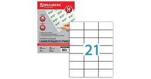 ملصق ذاتي اللصق، 70×42.3 مم، 21 ملصقًا لكل ورقة، أبيض، 20 جم/م²، 50 ورقة