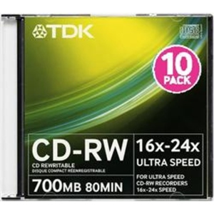 قرص مضغوط قابل لإعادة الكتابة 700 ميجابايت، 16x، علبة TDK رفيعة