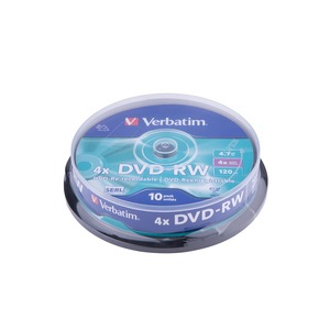 قرص DVD-RW سعة 4.7 جيجابايت، 4x علبة مجوهرات فيرباتيم، 10 قطع.