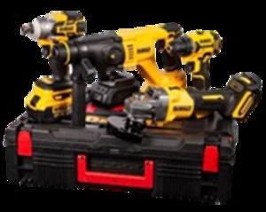 مجموعة من الأدوات الكهربائية اللاسلكية: مفتاح ربط، مثقاب مطرقة، مفك براغي، مطحنة زاوية