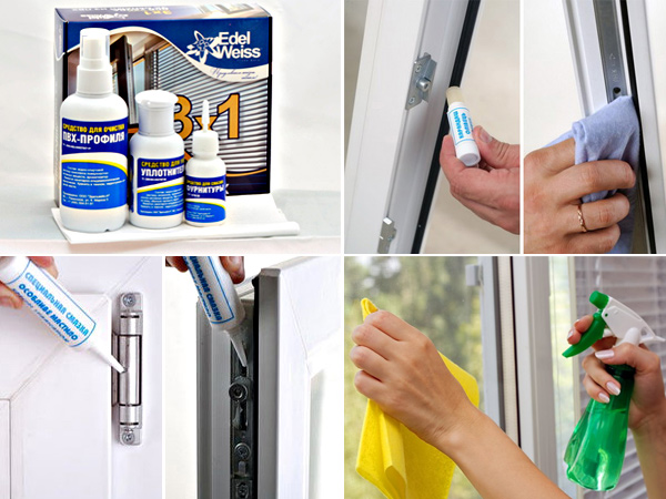 Pay special attention to the seals: wipe them with a damp and then a dry soft cloth, and lubricate them with silicone grease twice a year. This will maintain the elasticity of the rubber, ensure a tight fit of the sash, and protect against drafts.